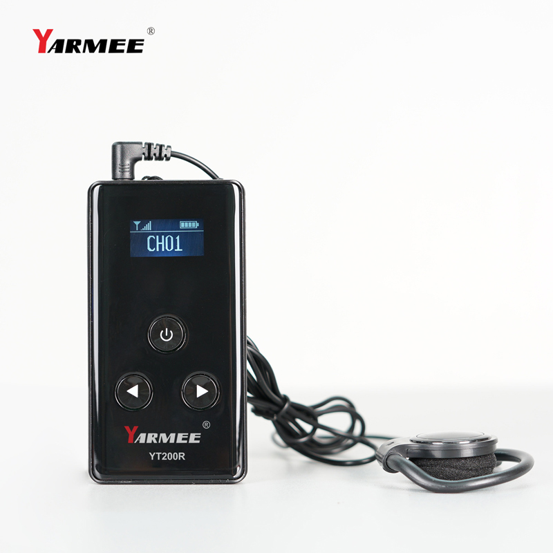 YARMEE YT200便攜式導游講解器是專門為導游和團體設計的。 該系統支持99個通道,幫助游客清楚地直接聽導游講解。 工作距離可達60米。